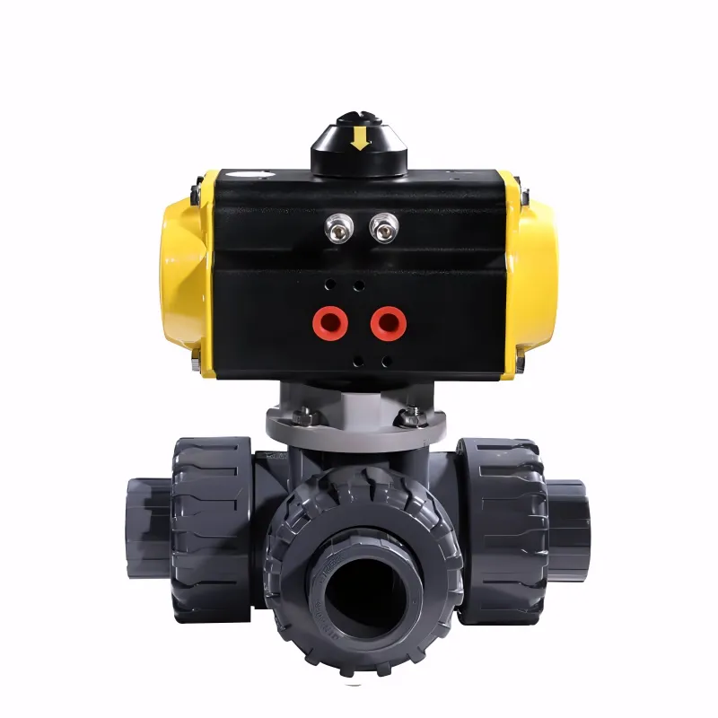 FAT-Q-PD Pneumatic Plastic 3-Way Double Union Ball Valve