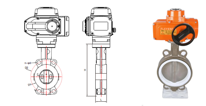 Fleyenda Electric Cast Iron Wafer PTFE Butterfly Valve is designed with a fluorine-based PTFE soft sealing lining that provides excellent chemical resistance and reliable leakage prevention. The tight seal between the disc and lining ensures stable performance even under high pressure. Available in sizes DN50–DN600, the valve body can be made of cast iron, CF8, CF8M, or carbon steel, with discs in cast iron or stainless steel.