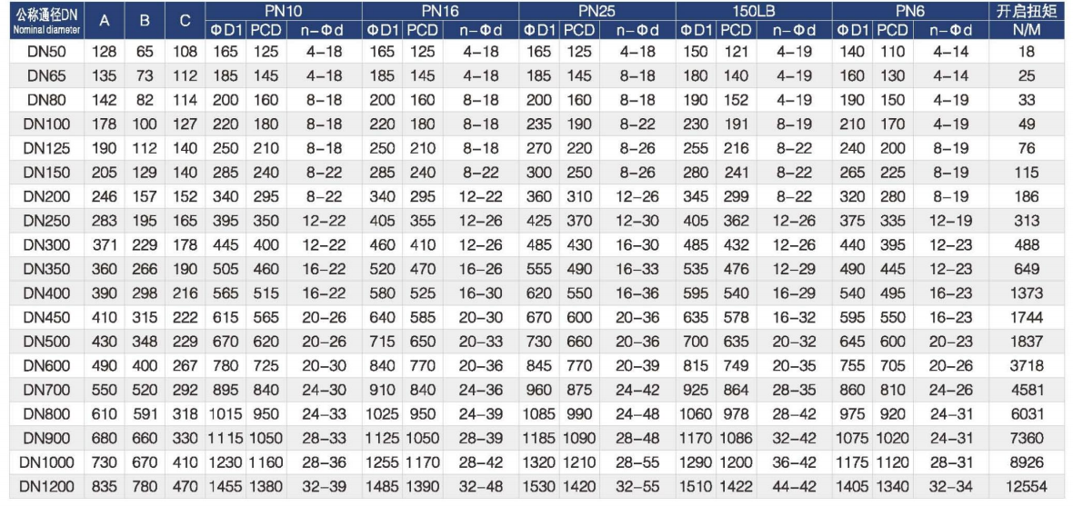 | Nominal Pressure | 1.0 MPa (PN10), 1.6 MPa (PN16), 150LB |